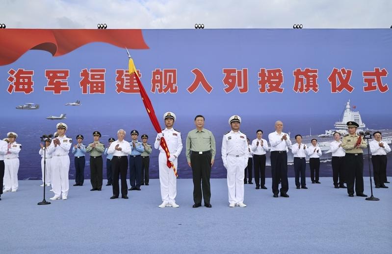 我国第一艘电磁弹射型航空母舰入列 习近平出席入列授旗仪式并登舰视察