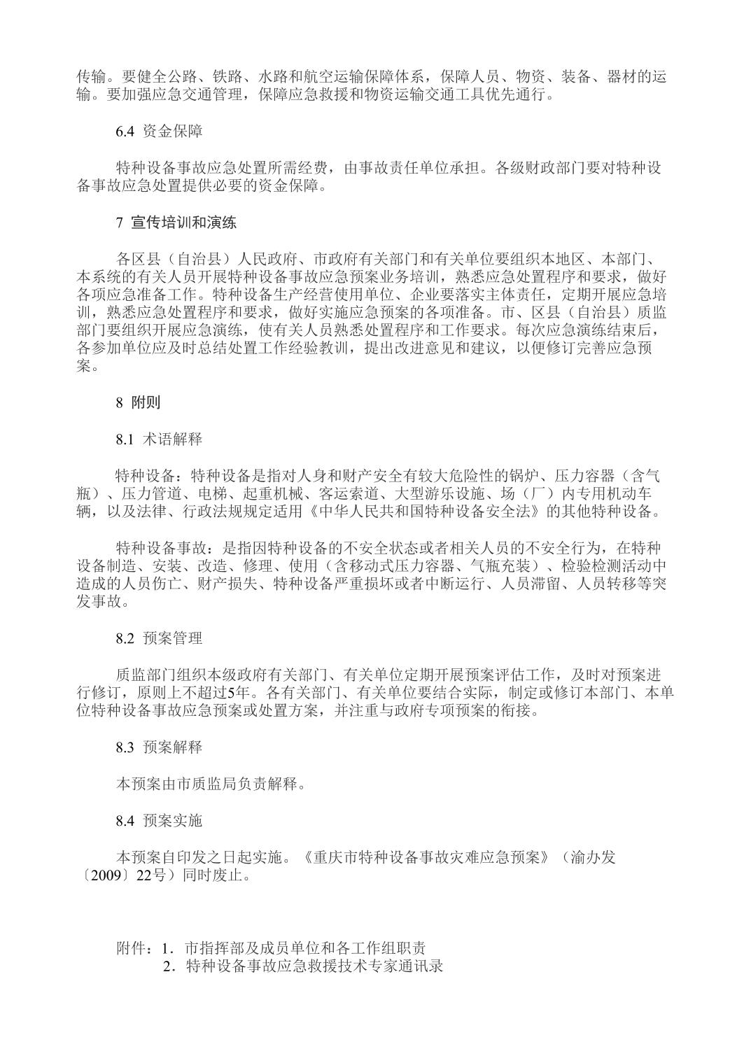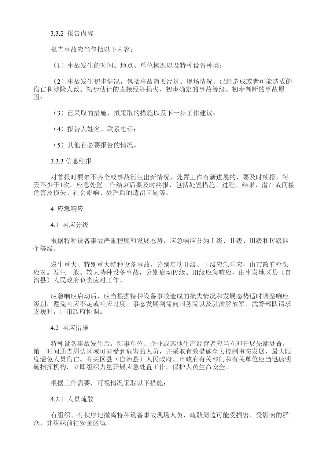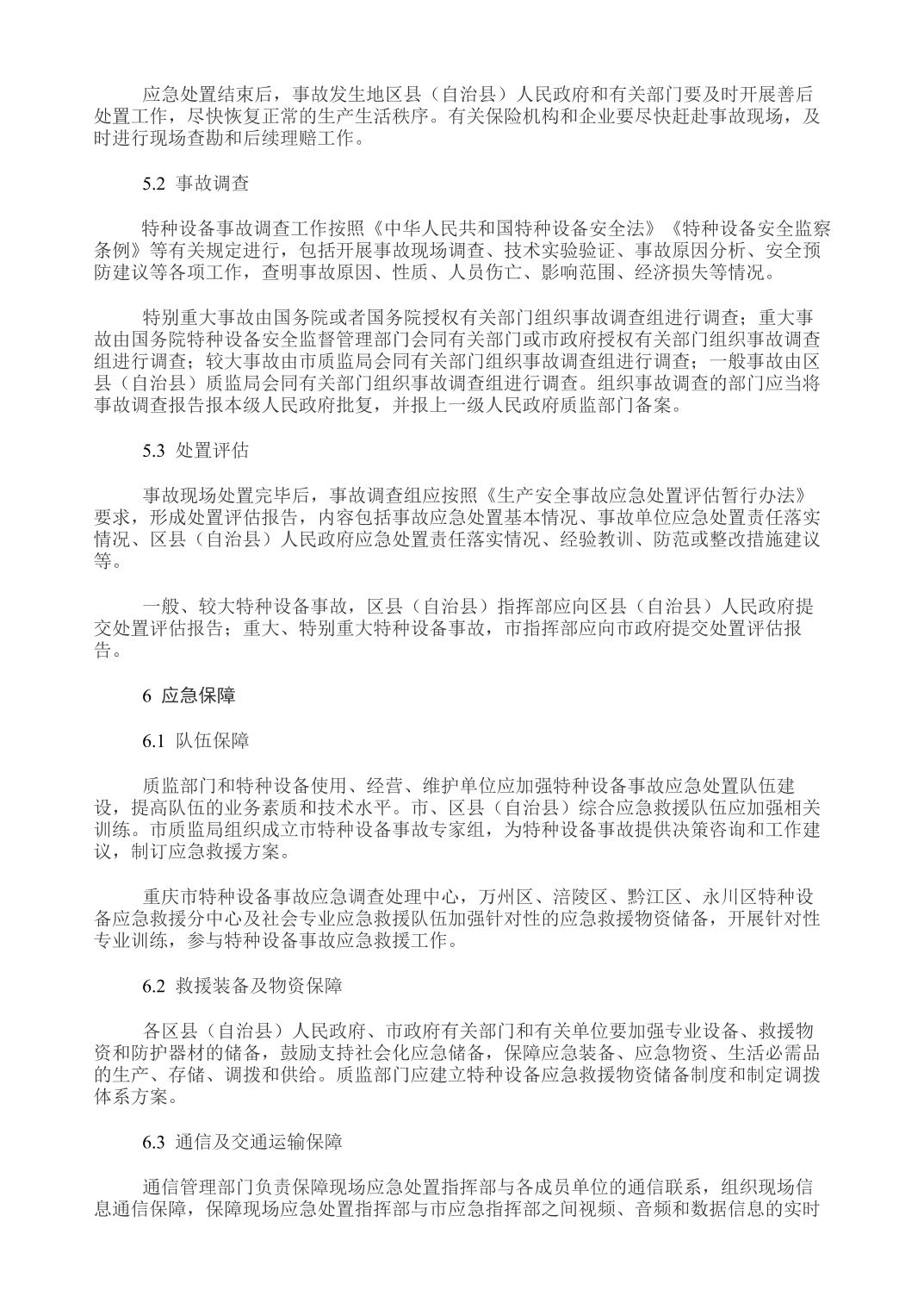重庆市人民政府办公厅关于印发重庆市特种设备事故应急预案的通知