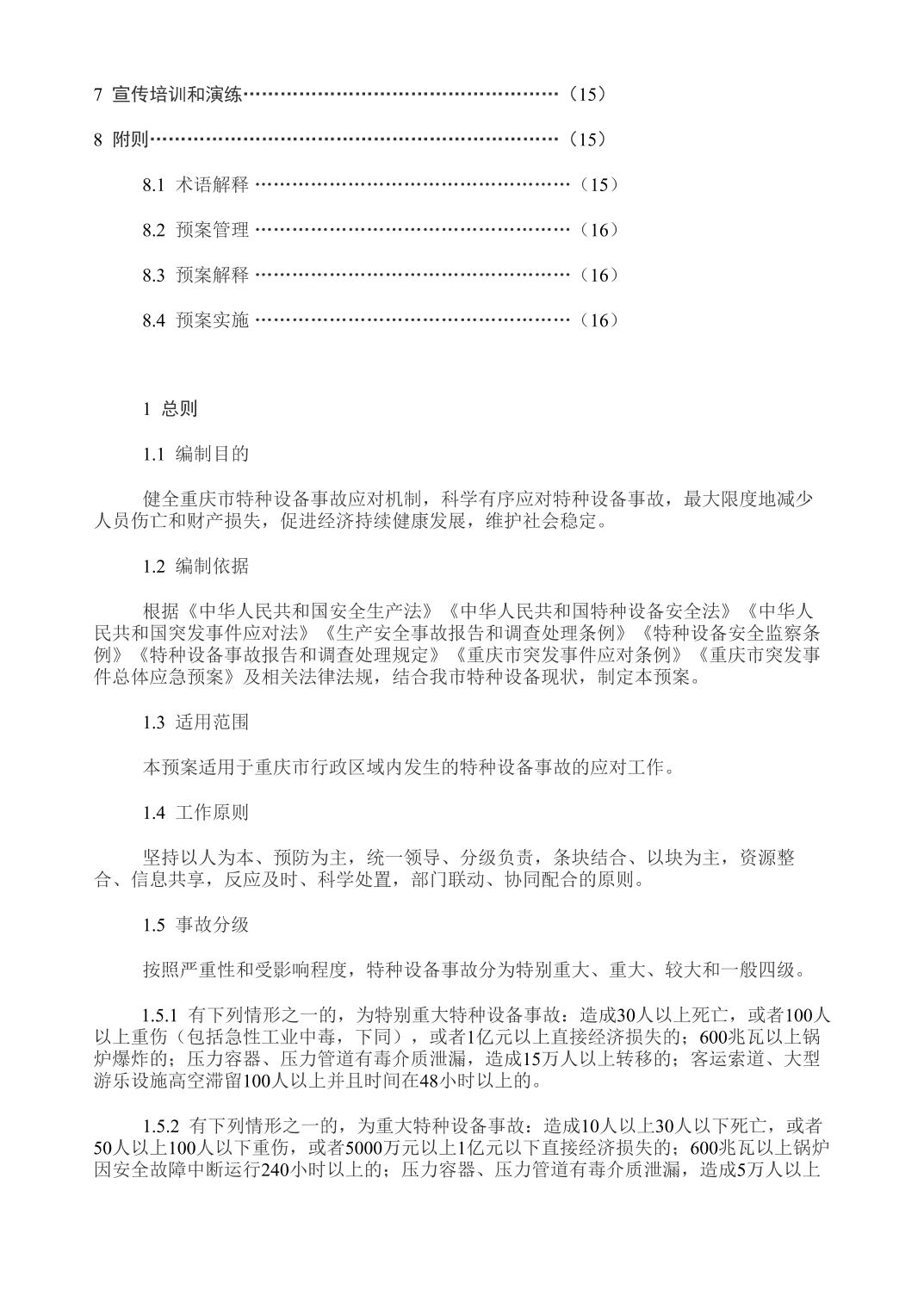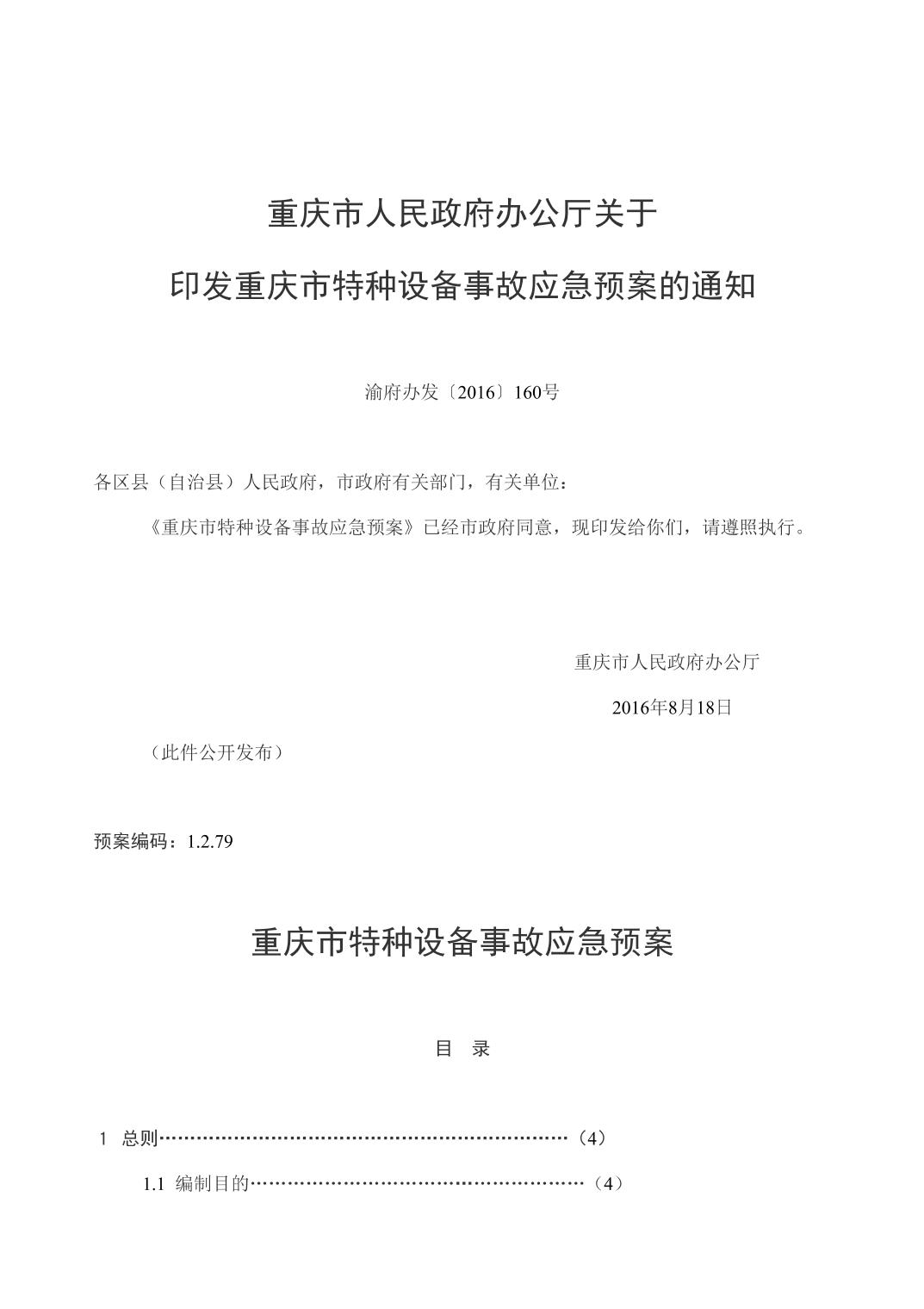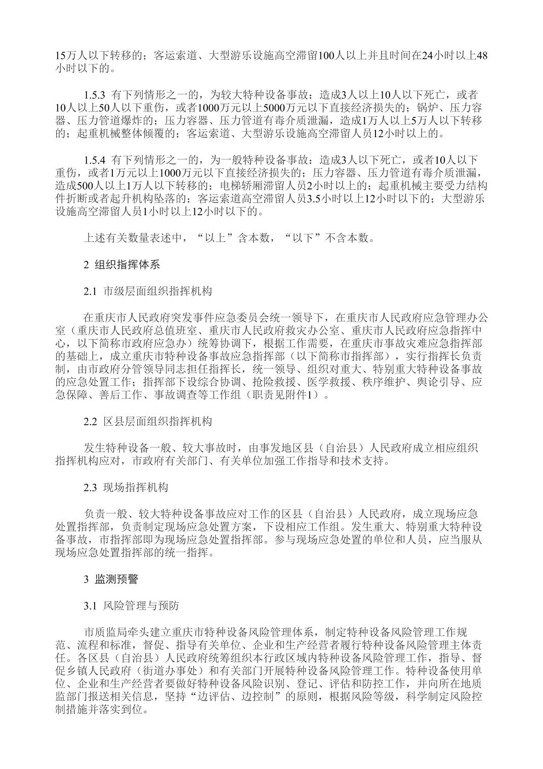 重庆市人民政府办公厅关于印发重庆市特种设备事故应急预案的通知