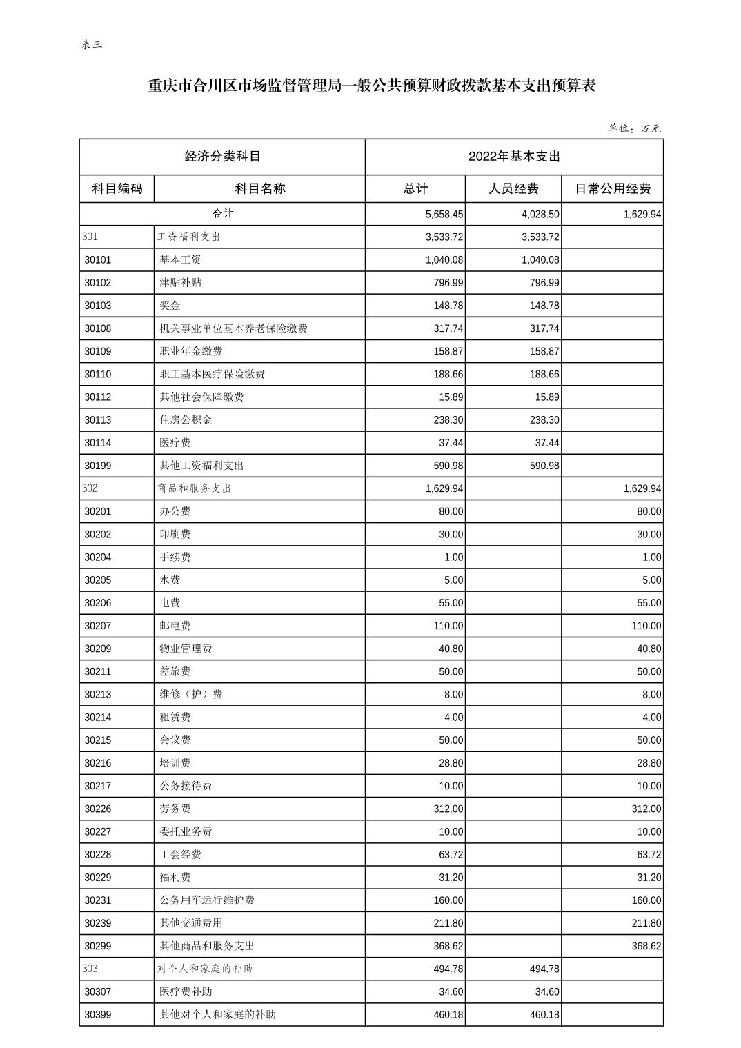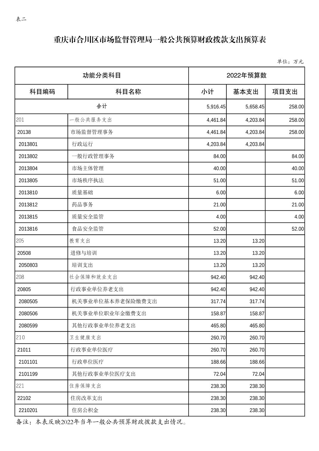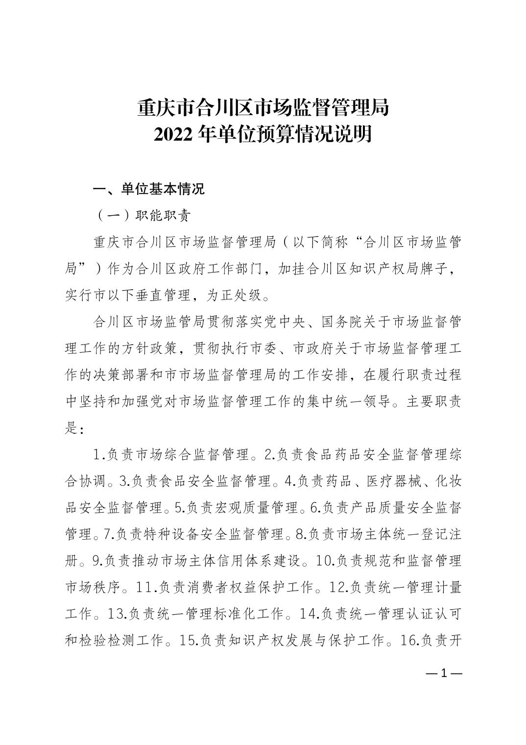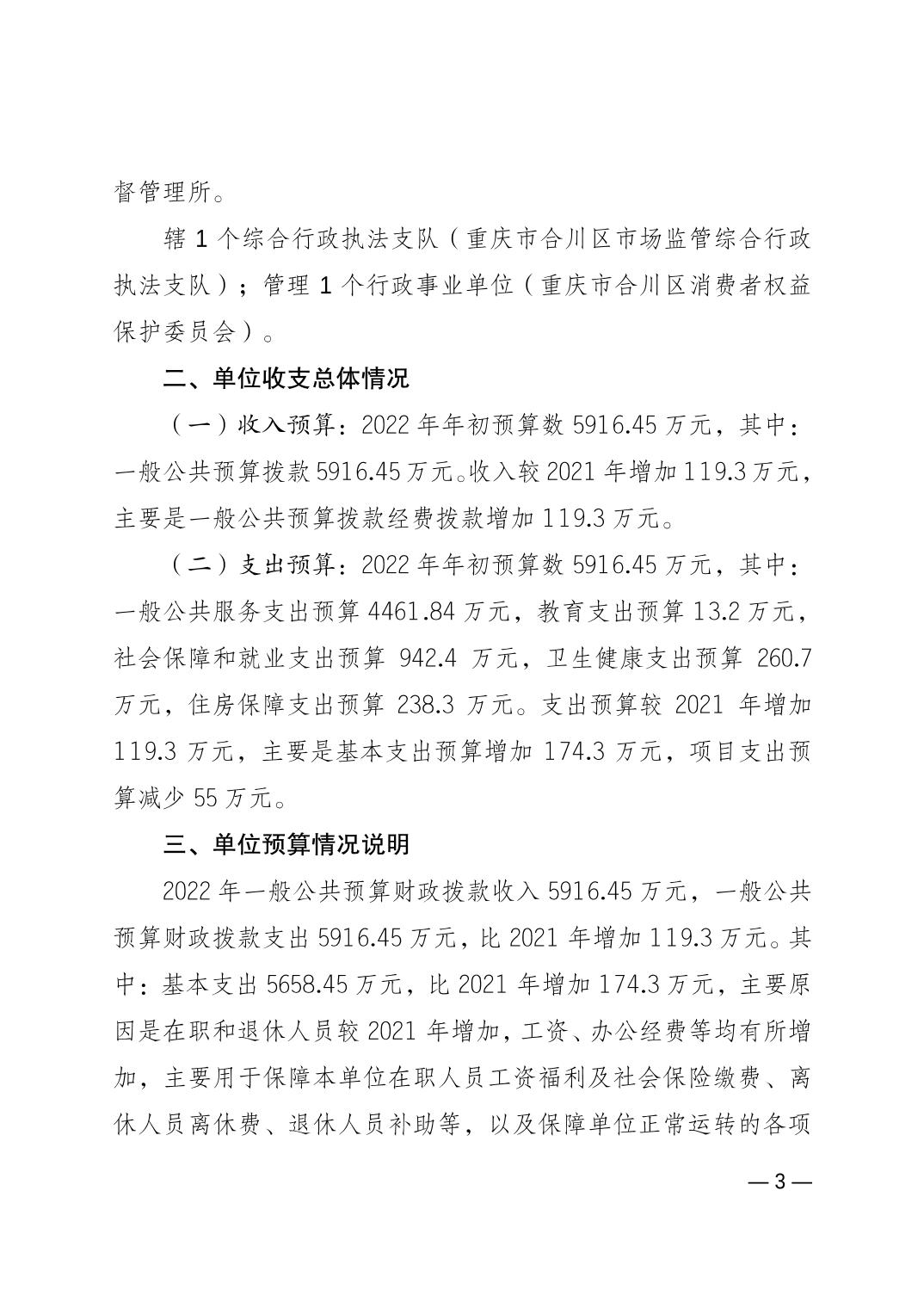 重庆市合川区市场监督管理局2022年单位预算情况说明
