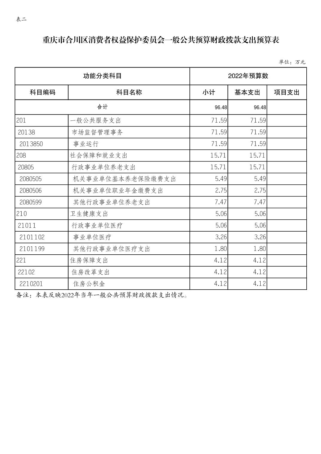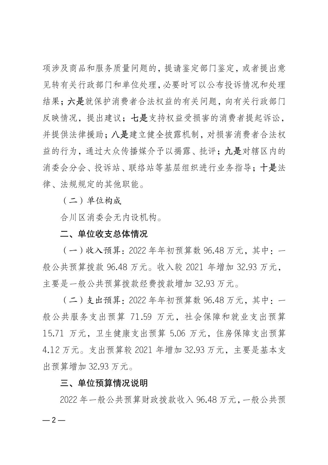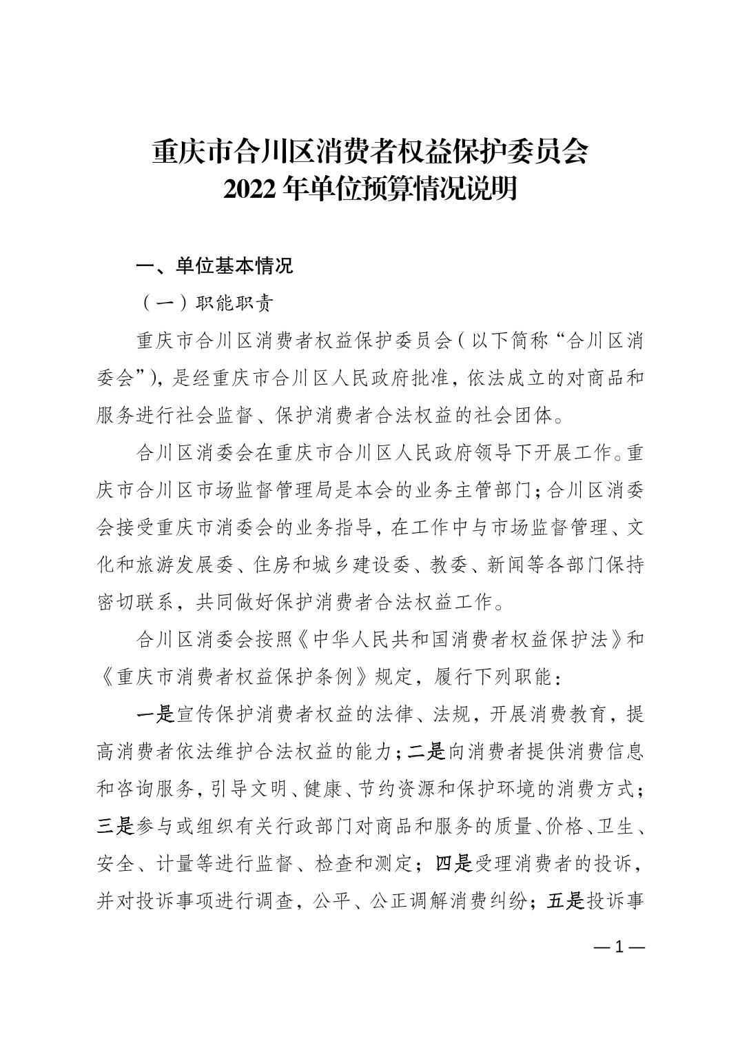 重庆市合川区消费者权益保护委员会2022年单位预算情况说明