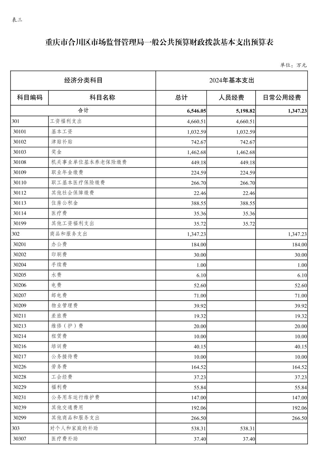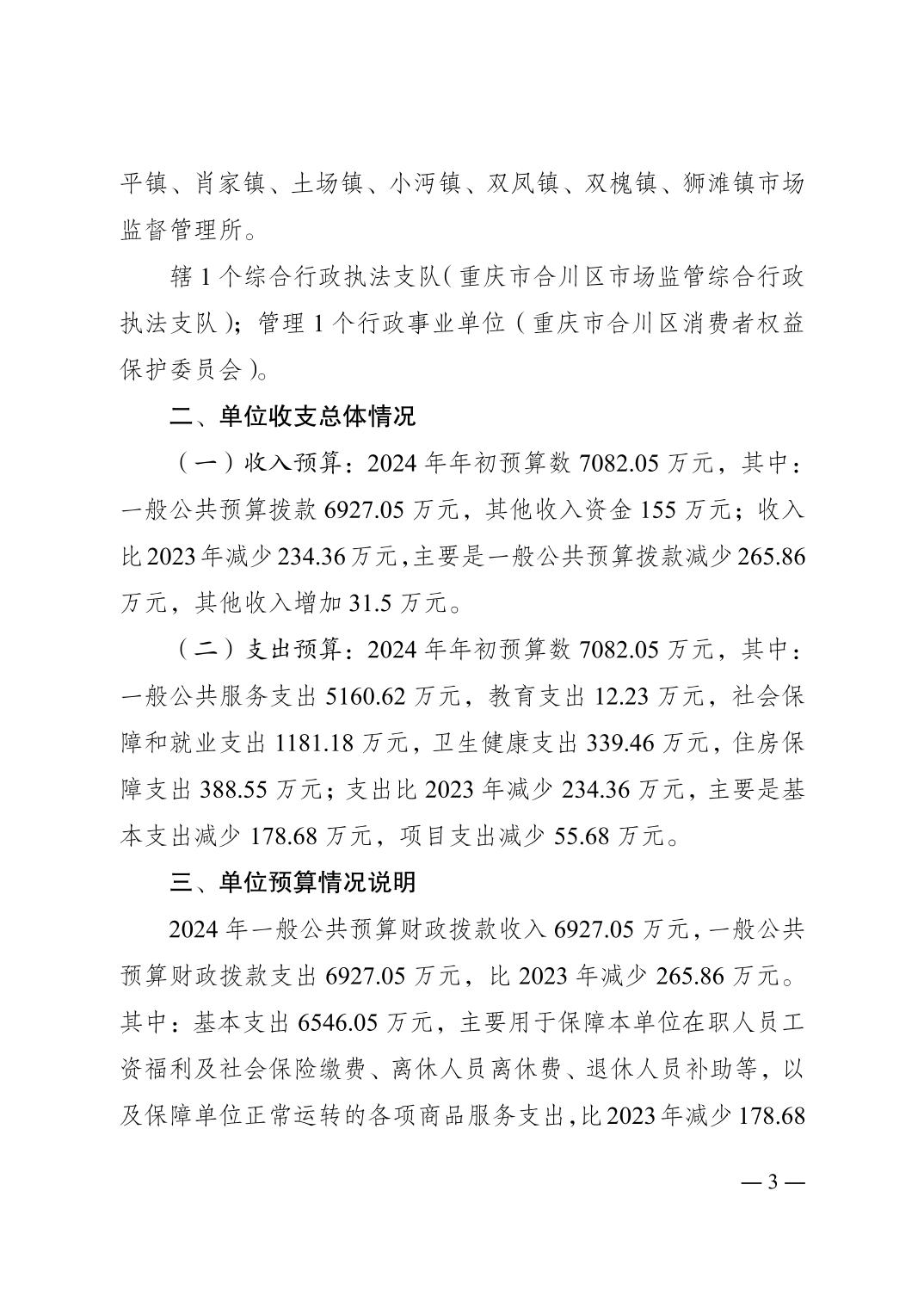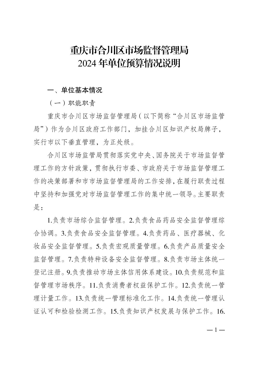 重庆市合川区市场监督管理局2024年单位预算情况说明