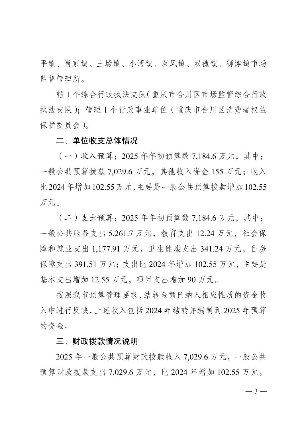 重庆市合川区市场监督管理局2025年单位预算情况说明