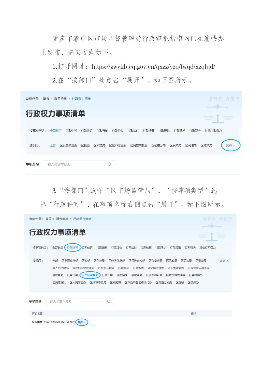 重庆市渝中区市场监督管理局行政审批指南