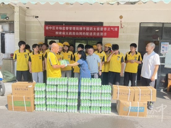 渝中区市场监督管理局联动国药太极藿香正气液、桐君阁大药房开展送清凉活动。